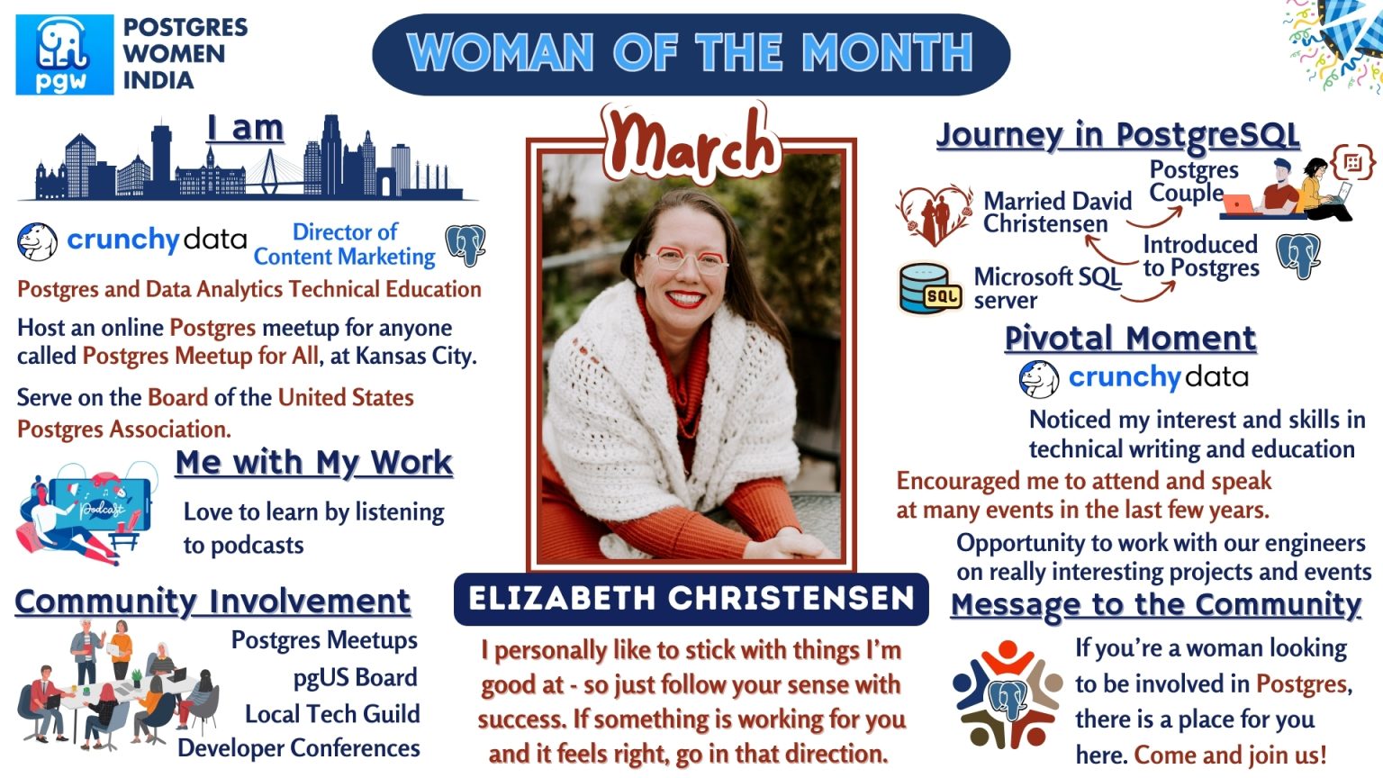 If you’re a woman looking to be involved in Postgres, there is a place for you here. Come and join us!  My DM’s are open and I’d love to e-meet more friends in India.